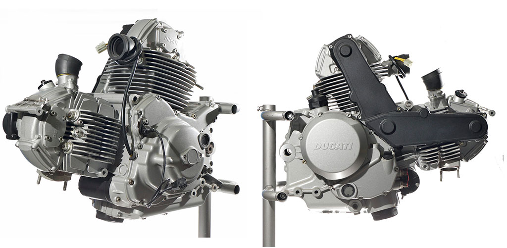L’impostazione di base del nuovo motore non è differente da quella utilizzata nella precedente unità da 900 cc, ma gli stampi sono stati completamente rifatti introducendo diverse innovazioni. Il basamento motore realizzato con due carter uniti secondo un piano verticale, nasce da un progetto completamente nuovo.