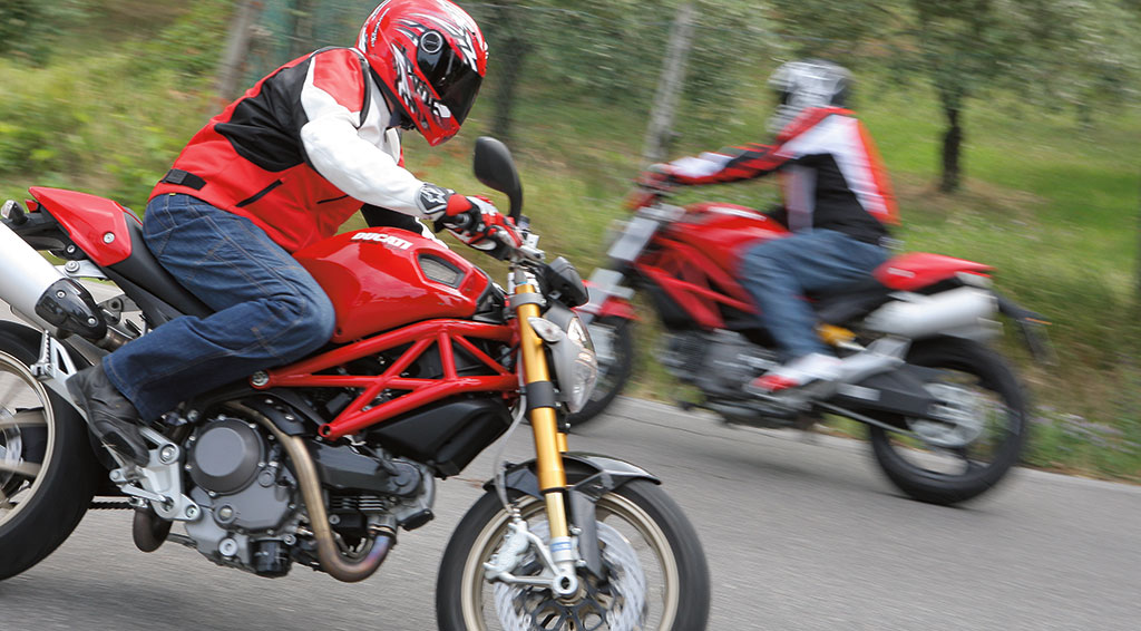 E’ fuori di dubbio, come da tradizione, che alla guida di un Monster l’approccio con le prime curve risulti di un’immediatezza disarmante, in maniera quasi paritaria per entrambi i modelli. La posizione, forse a causa della sella inclinata in avanti e del manubrio un po’ avanzato, obbliga un caricamento sui polsi leggermente troppo accentuato.
