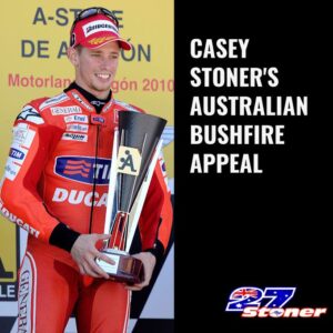 Il due volte campione del mondo di MotoGP e leggenda Ducati Casey Stoner sta mettendo all’asta la tuta che ha indossato al Gran Premio di Aragona 2010 in aiuto delle comunità colpite dai devastanti incendi in tutta l’Australia.